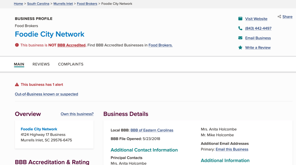 Better Business Bureau – Foodie City Network